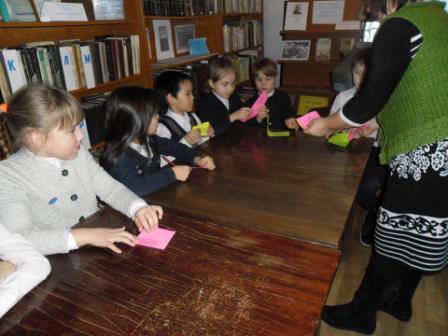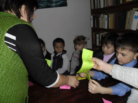 Excursion to the village library with Zhas Kyranovtsy 1a and 1b on the topic "Library house and I in it."