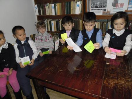 Экскурсия в сельскую библиотеку с Жас Кырановцами 1а и 1б на тему "Библиотечный дом и я в нем" .